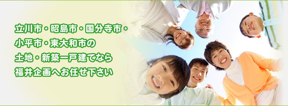 立川市、国分寺市、小平市、東大和市、武蔵村山市の新築一戸建て、土地の事なら地域特化情報に強い福井企画にお任せ下さい。
